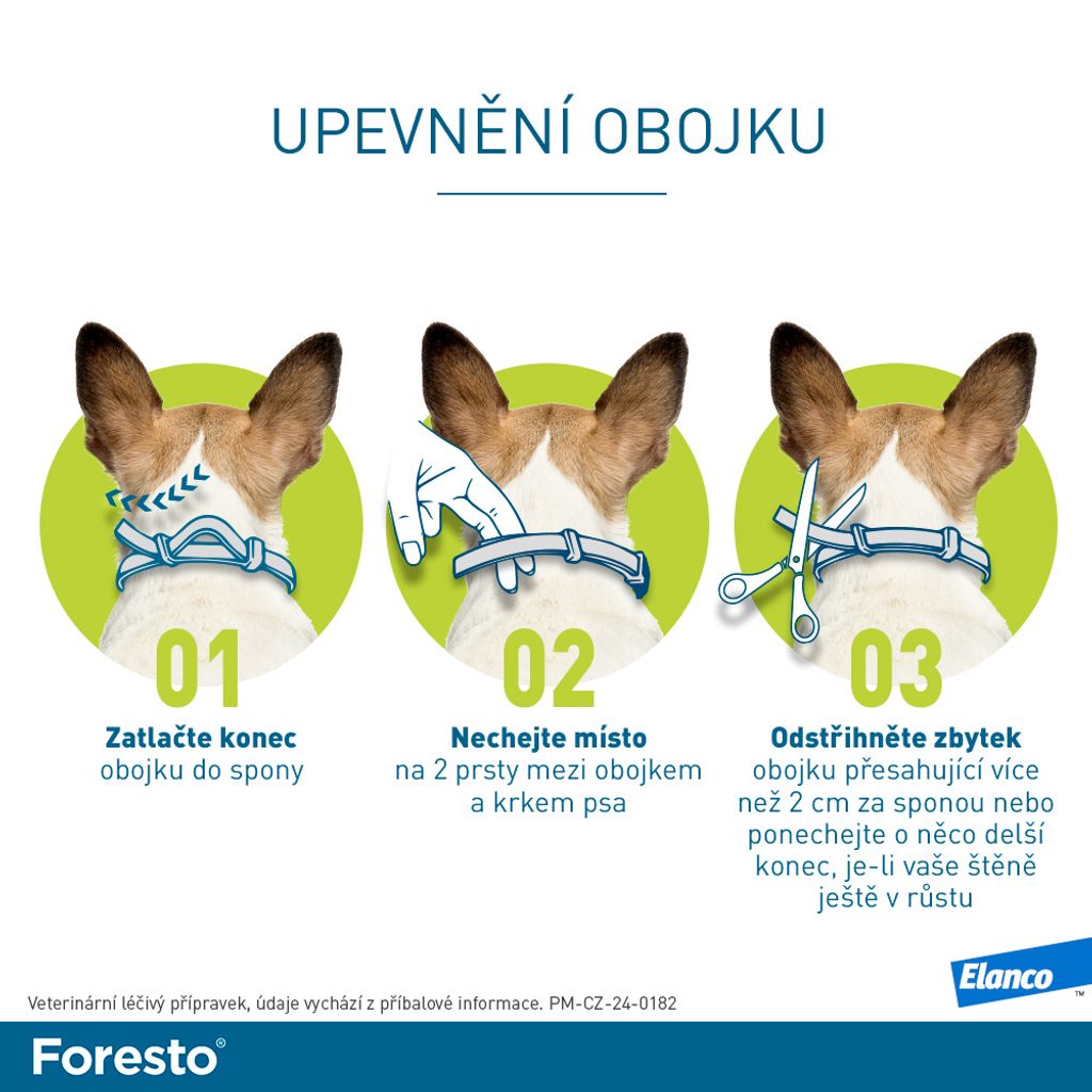 Foresto je inovatívny obojok, ktorý chráni psy nielen pred napadnutím, ale zároveň znižuje riziko prenosu nebezpečných ochorení. Vďaka unikátnej technológii uvoľňuje nízke dávky účinných látok nepretržite po dobu až 8 mesiacov.