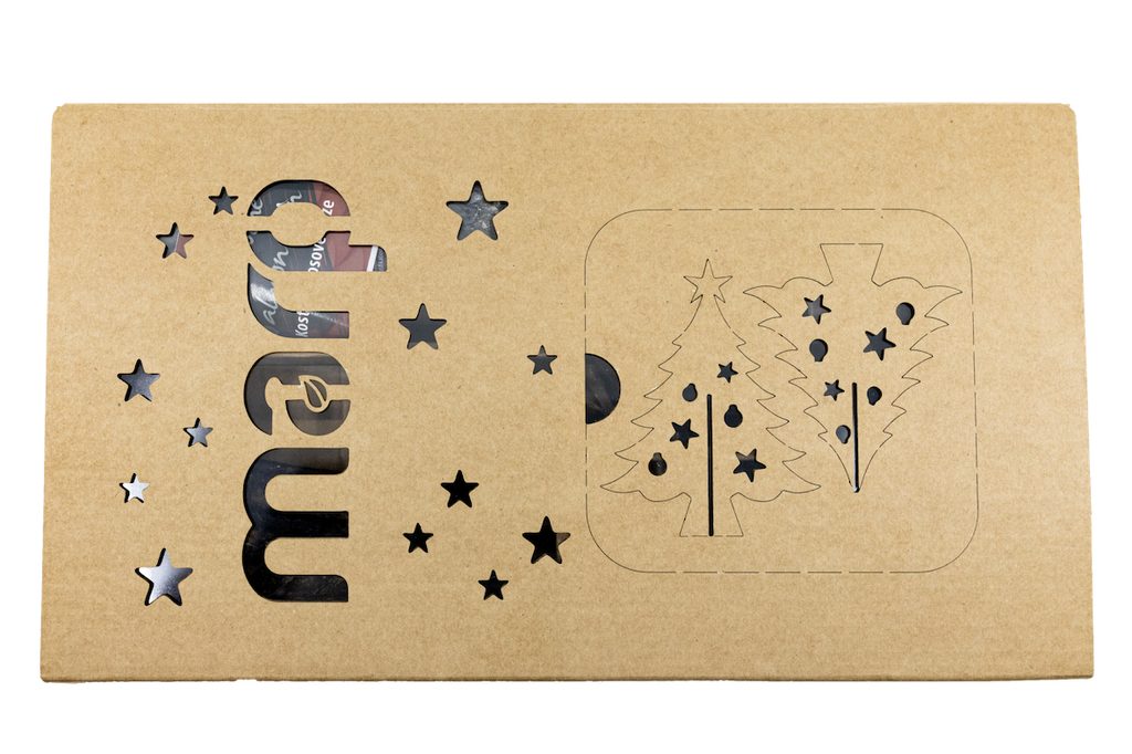 Vianočný maškrtný box nie je len krásnym darčekom pre vašich miláčikov! Pod tlačeným rukávom sa skrýva aj malý darček pre vás v podobe vianočného stromčeka, ktorý čaká na vylúpnutie a svoje nové miesto u vás doma. Darčeková krabička aj po vybratí dekorácie zostáva kompletná a plne funkčná.