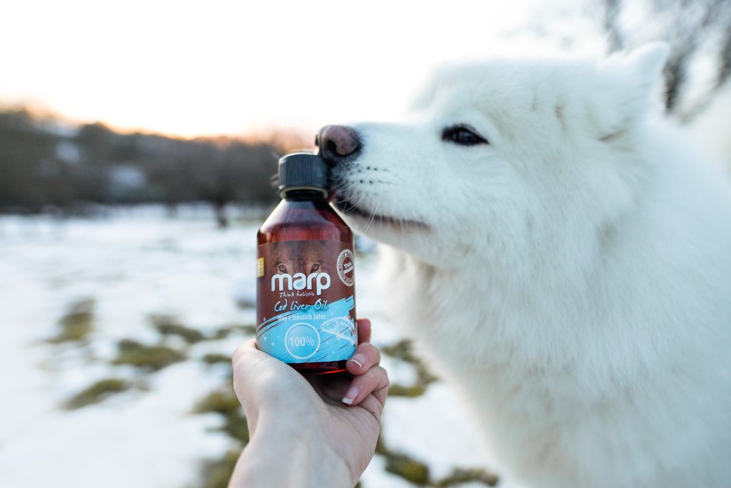 Špičkové oleja z radu Marp Holistic môžete pridávať ku granulám, konzervám, doma pripravené alebo surovej strave.