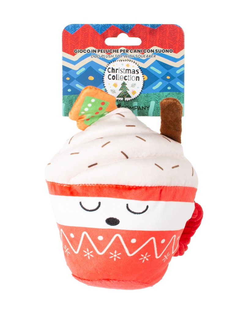 Roztomilý plyšový hrnček plný „kakaa“ – hrejivá sviatočná hračka, ktorá poteší každého psíka.