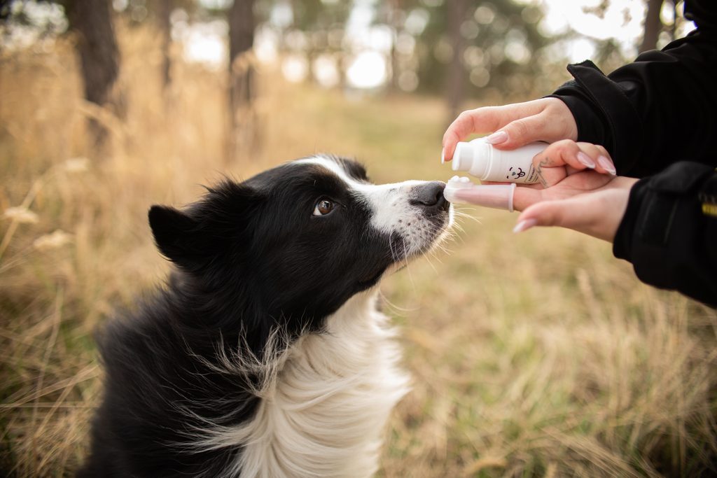 - Naneste primerané množstvo pasty na priloženú prstovú kefku a dôkladne vyčistite zuby psa alebo mačky.