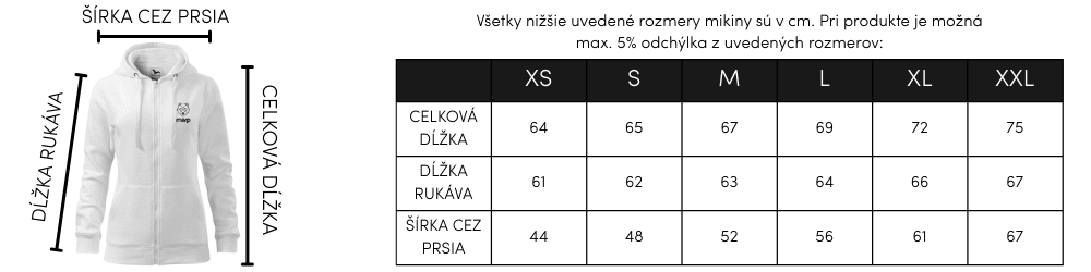 Marp dámska mikina v štýle klokanky s minimalistickou potlačou, kapucňou a zipsom