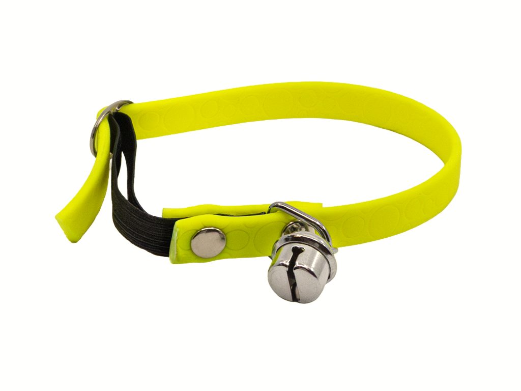 Obojok pre mačky POLYTRACE je nastaviteľný a vybavený zvončekom.