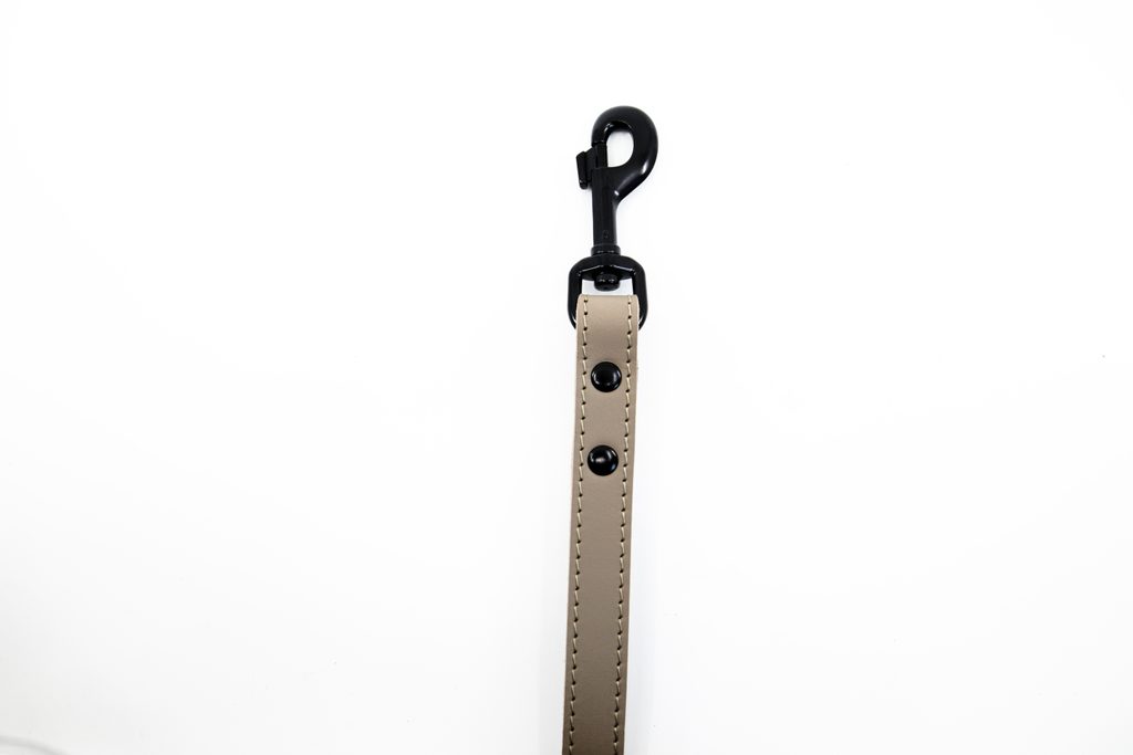 Dizajn vodítka podčiarkuje pevné prešitie režnou niťou a precízne spracovanie. Čierne kovové karabíny zaisťujú bezpečné a spoľahlivé pripnutie k obojku alebo postroju.