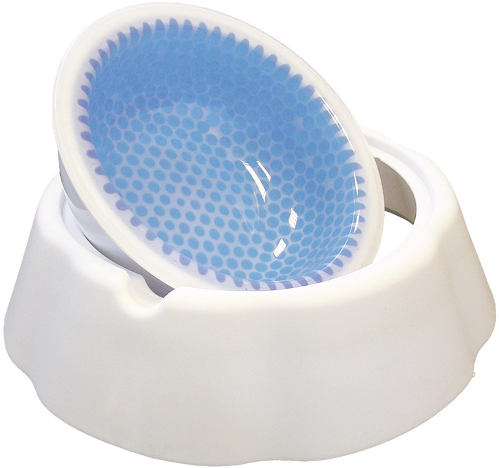 Vaše domáce zvieratá milujú pitie studenej vody. V letných dňoch je veľmi ťažké zachovať vodu v miske chladnú. Chladiaci miska je ideálnym riešením udržiavanie chladnej vody po dobu niekoľkých hodín. Jednoducho zmrazte vnútro v mrazničke na 2 hodiny, potom vložte späť do základne a naplňte ju vodou. Kapacita približne dve šálky vody. Voda v miske zostane studená 5-8 hodín. Miska má protišmykové body na spodnej strane misky, vďaka ktorým sa udrží na mieste.